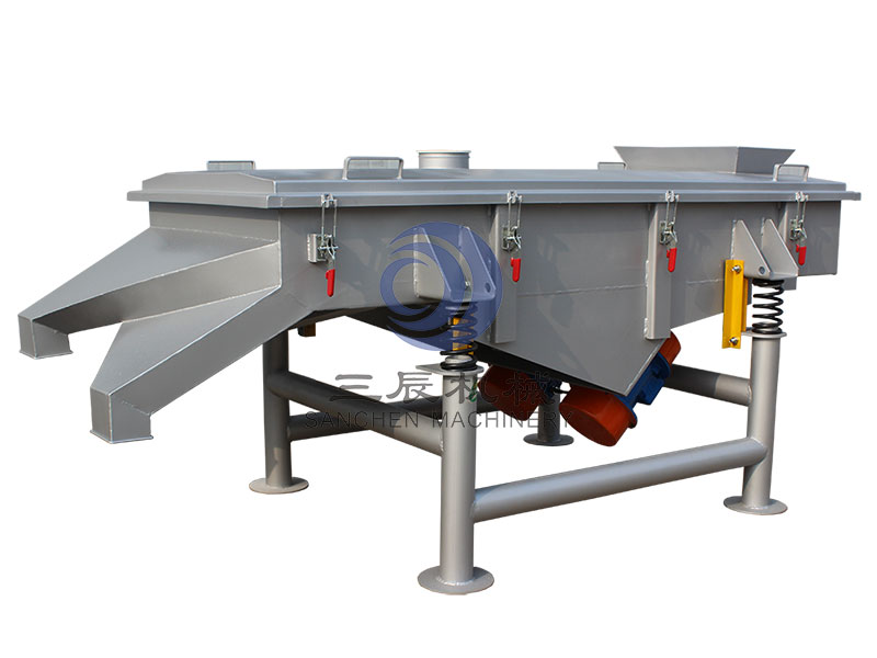 1.SC系列直線振動篩利用雙振動電機激振作為振動源,使物料在篩網(wǎng)上被拋起,同時向前做直線運動,通過多層篩網(wǎng)產(chǎn)生數(shù)種規(guī)格的篩上物、篩下物,分別從各自的出口排出。